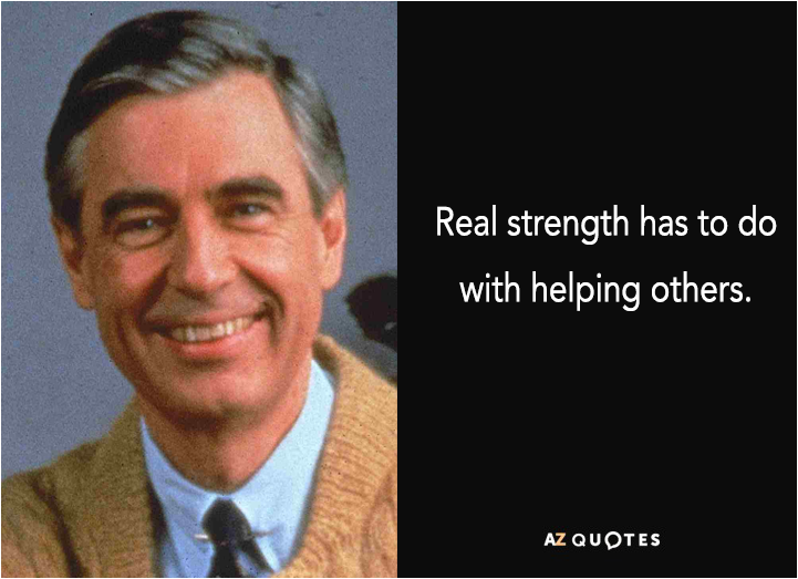 Fred Rogers dedicated his life to caring for and championing kids by teaching his message of simple kindness. He also had a quiet strength that helps us understand that loving energy is not “soft”. Go online and watch his famous testimony before a Senate committee in 1969. Rogers was arguing for funding for PBS children’s programming, and he inspirationally expressed the value of his show, particularly in helping children with their feelings. He contrasted his show and its impact on children with violent cartoons. It’s only 6 minutes long and well worth watching, the Senator listening to him starts out cynical and ends up saying he has “goosebumps”. The message that Mr. Rogers gave to children, “I like you, just the way you are”, is one of heartfelt kindness.